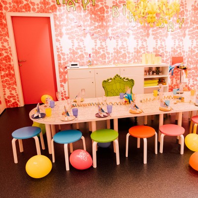 The two party rooms each offer space for up to 13 children (incl. the birthday child) to celebrate comfortably. It is also possible to book both rooms at the same time and combine them into one large party room for up to 26 children.